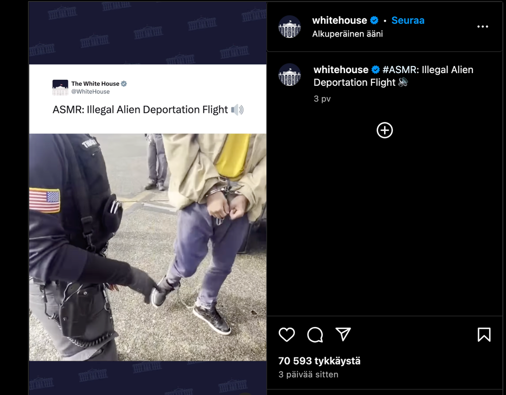 - Trump harkitsee habeas corpus -oikeuden poistamista: Valkoinen talo aikoo poistaa siirtolaisilta ns. habeas corpus -oikeuden, mikä mahdollistaisi karkotukset ilman oikeuskäsittelyä. Habeas corpus -oikeudella tarkoitetaan oikeuttaa haastaa itseensä kohdistuva karkotus.